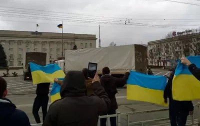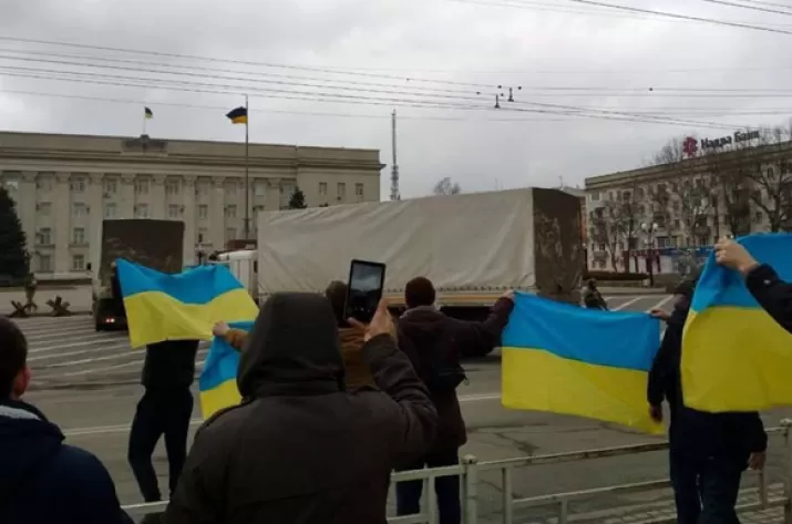 Россиянам не удалось снять видео, где херсонцы "счастливо" встречают оккупантов и разбирают "гумпомощь" от врага. Украинцы вышли в город с украинскими флагами и отказались принимать товары от россиян. Об этом сообщает "Украинская правда".