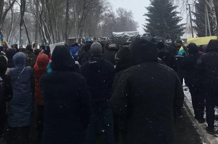 Люди скандируют "Прочь", "Позор", "Домой", "Россия, иди н***й", "Мы - украинцы" и так далее.