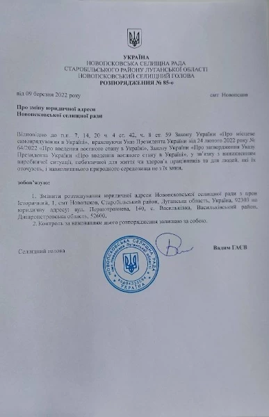 "Я, как Новопсковский поселковый голова, НЕ БУДУ вести НИКАКИХ переговоров с оккупантами без согласия и разрешения военного руководства ВСУ в своем регионе. НЕ БУДУ подписывать никаких документов с представителями вооруженных формирований или оккупационной администрацией государства-агрессора. НЕ ПЕРЕДАМ печати поселкового совета. ПРОДОЛЖАЮ при любых условиях выполнять возложенных на меня, как на поселкового голову, обязанности. Поддерживаю связь с военным руководством ВСУ в своем регионе и представителями органов исполнительной власти", - написал Гаев.