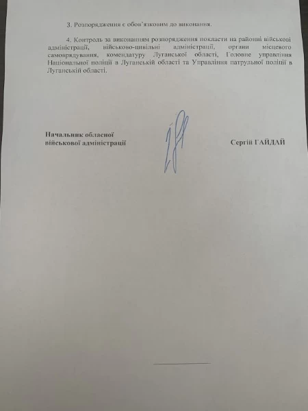 Согласно распоряжению главы Луганской области Сергея Гайдая, все предприятия, учреждения, организации и физические лица обязаны соблюдать режим путем: