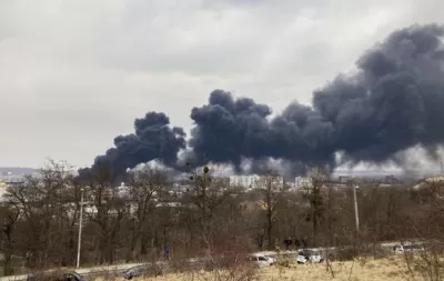 Несколько часов назад во Львове прогремели несколько взрывов. Позже выяснилось, что российские войска нанесли ракетный удар по промышленному объекту, где хранилось топливо. На нем вспыхнул пожар.