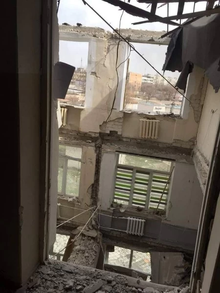 На фото здание лабораторного корпуса университета. Уничтожена лекционная аудитория. В еще одном месте снаряд проломил сразу три этажа.