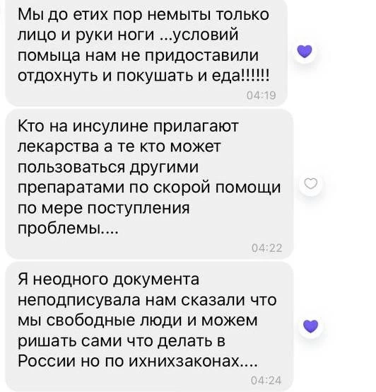 Весь цей час можливості помитися родині так і не надали. За словами жінки, вони мили тільки руки та обличчя. Водночас вивезеним мешканцям давали їжу, деякі ліки та можливість поспати.