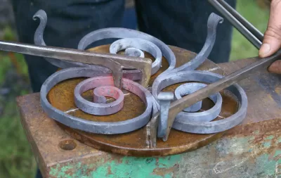 Широкое использование возможностей техники в современной кузнице позволило ковать металл и без разогрева – методом холодной ковки. Выполненные методом холодной ковки изделия, в силу строгой повторяемости геометрически правильных узоров, больше подходят к современному стилю оформления интерьеров и архитектуры. При холодной ковке отдельные элементы изготавливаются по специальным шаблонам. Это позволяет создавать симметричные композиции, вносить повторяющиеся элементы в различные изделия. Узор, запечатленный на ограде, может быть в точности перенесен на ворота, калитку, оконные решетки, беседку в саду, мангал и даже на ограждение камина в доме.
