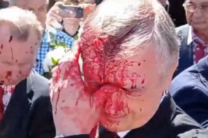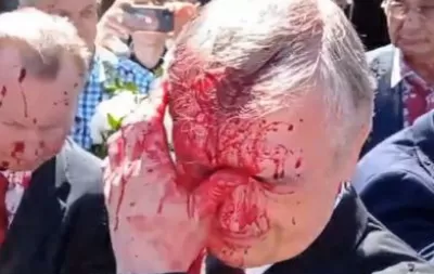 Посла РФ в Польше Сергея Андреева облили красной краской во время возложения цветов на мемориальном кладбище советских солдат в Варшаве.