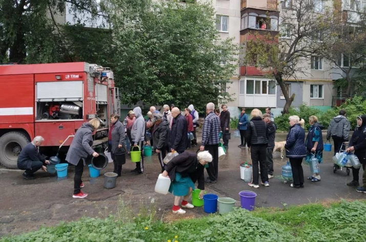 Централизованного водоснабжения нет около месяца. В городах люди обустроили на улице души у подъездов. Воду подвозят ГСЧС. Стационарные емкости установлены в городах области, села живут за счет колодцев.