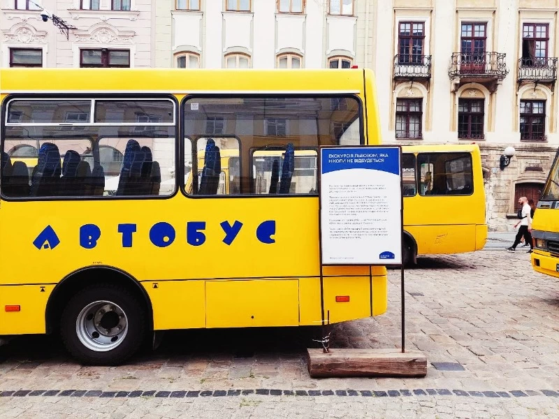«Ця акція, коли приїхали автобуси, в яких є бейджі дітей з їхніми іменами, наплічники, іграшки… Проте самих дітей немає. Вони загинули. Їх було вбито. І це показує жах цієї ситуації, в якій ми зараз живемо», - сказав ініціатор акції, керівник молодіжних просторів «Твори» у Львові Олег Малець.
