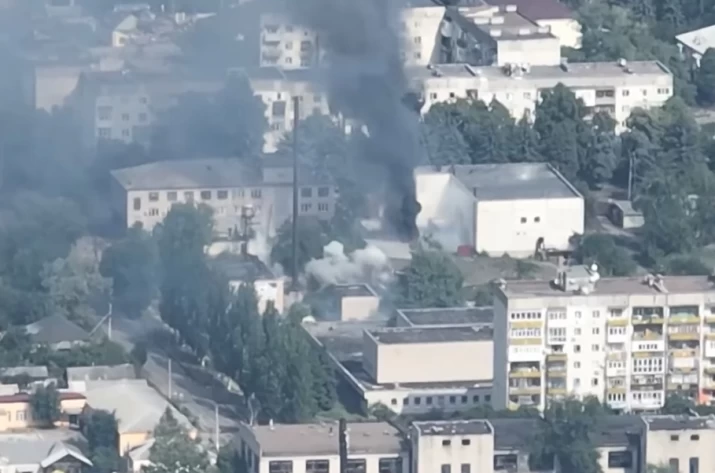 На видео видно, как нацгвардейцы точными ударами уничтожают место размещения оккупантов и склад боеприпасов, который они разместили среди жилых кварталов.