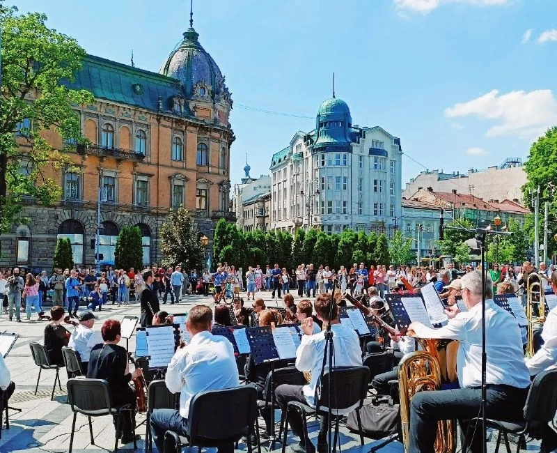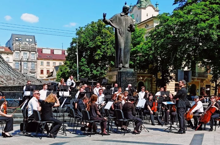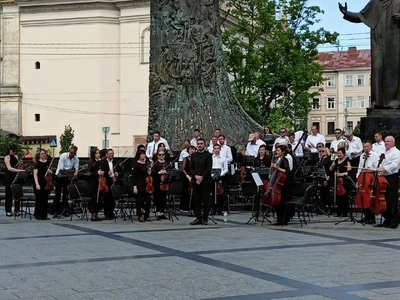 У Львові 3 червня на проспекті Свободи біля пам’ятника Тарасу Шевченку грав симфонічний оркестр Луганської обласної філармонії.