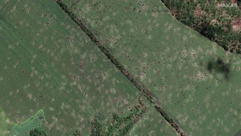На супутникових знімках можна помітити, як окопалася в полях ворожа артилерія, яка орієнтована на Сєвєродонецьк, а також сліди масованих обстрілів біля села Довгеньке, що на Харківщині.