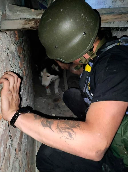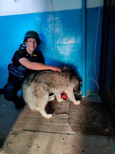 «Поліцейські знайшли людину під час перевірки наслідків обстрілу. Будинок ще палав, а чоловік не мав сил вийти. Правоохоронці витягнули мешканця та надали першу домедичну допомогу. Пса не залишили – знайшли у підвалі, де він ховався від вогню», - написали у поліції.