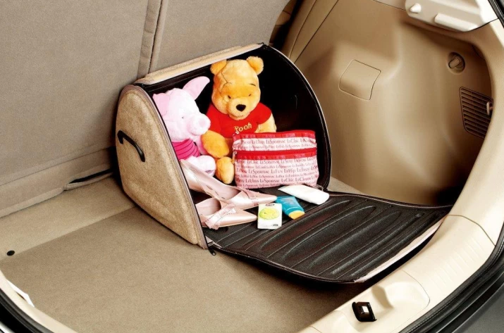 За счет компоновки органайзера освободится много места. Это поможет увеличить полезную площадь. Чтобы найти нужную вещь, не надо копаться в куче других предметов. Внутри органайзера есть несколько отсеков, обеспечивающих быстрый доступ. Сумка защитит вещи внутри нее и багажник от сильных ударов, позволит избежать сколов и вмятин, царапин и трещин на пластике.