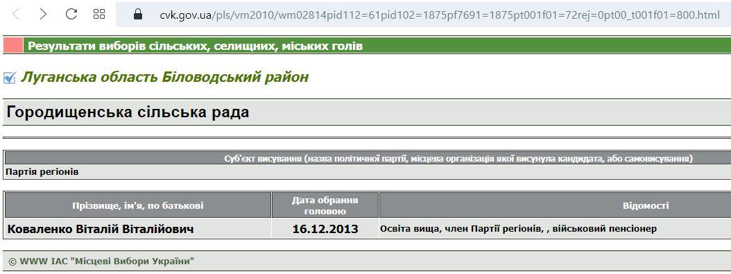 Останньою посадою до ганебного призначення «в.о. глави адміністрації» Віталія Коваленка була робота старостою в Городищі Біловодської селищної громади.