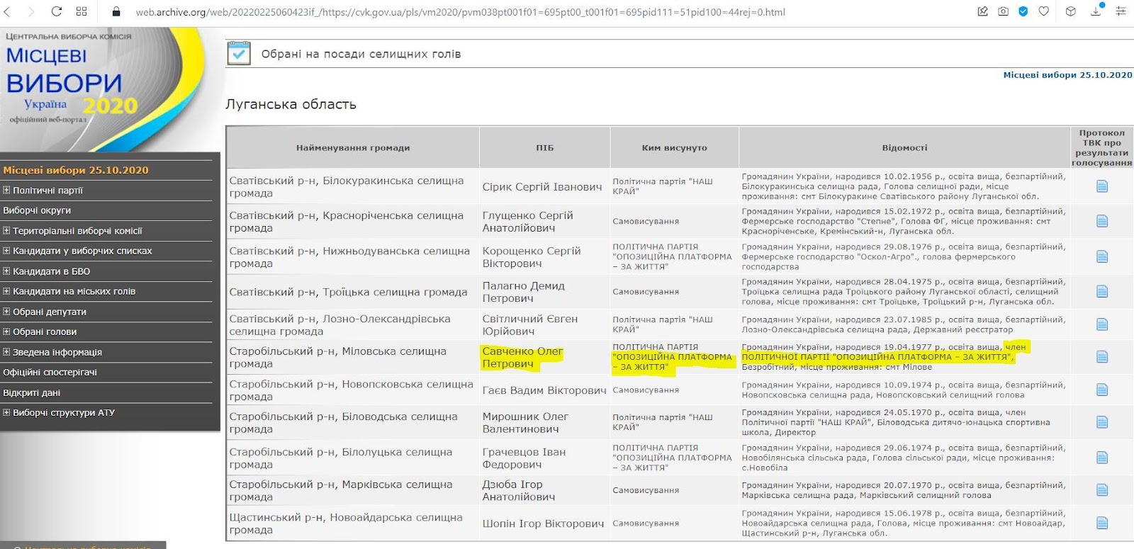 Тож можна було б пожартувати, що владу в Міловському районі повернула собі Партія регіонів, якби окупаційна адміністрація «ЛНР» не заборонила партії ще в 2014 році. Таким чином, голова райорганізації ПР водночас балотувався від іншої партії – ОПЗЖ, називаючи себе її членом. Та і без того стосовно Савченка Луганська обласна прокуратура вже порушила кримінальне провадження за підозрою в держзраді.