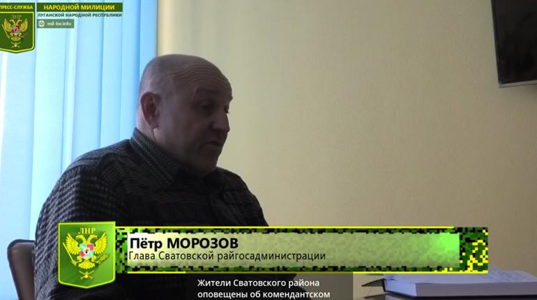 На першій нараді «глави ЛНР» Леоніда Пасічника з «виконуючими обов’язки глав адміністрацій» від Сватівського району був Петро Морозов. Колишній керівник місцевої філії «Укртелекому», він останні роки працював на посаді з довгою назвою «провідний інженер електрозв’язку та лінійних споруд електрозв’язку» в тому самому підрозділі ПАТ «Укртелеком».