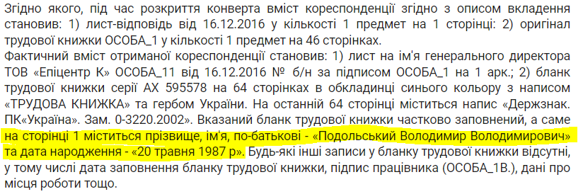 Фрагмент судового рішення, де згадуються особисті дані Подольського