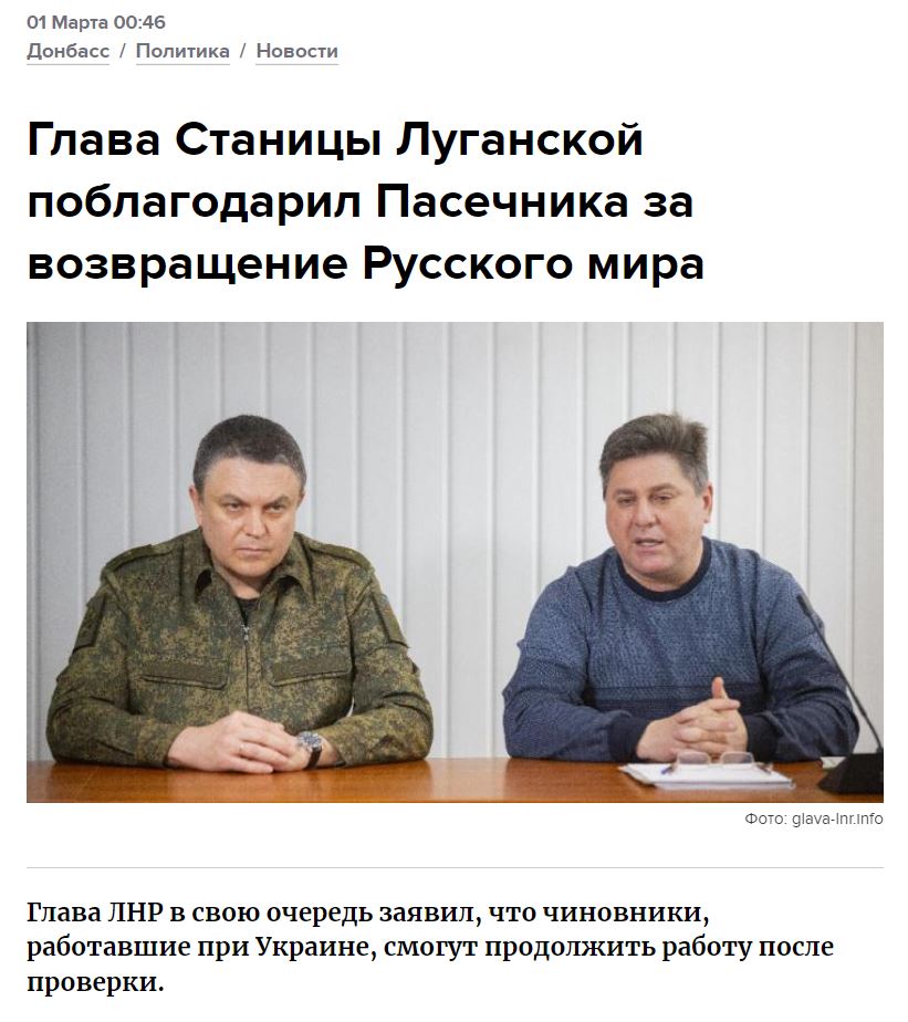 Заслуги обох «в.о. глави райдержадміністрації» вже встигла оцінити прокуратура Луганської області, яка викликала їх для вручення повідомлення про підозру в колабораціонізмі.