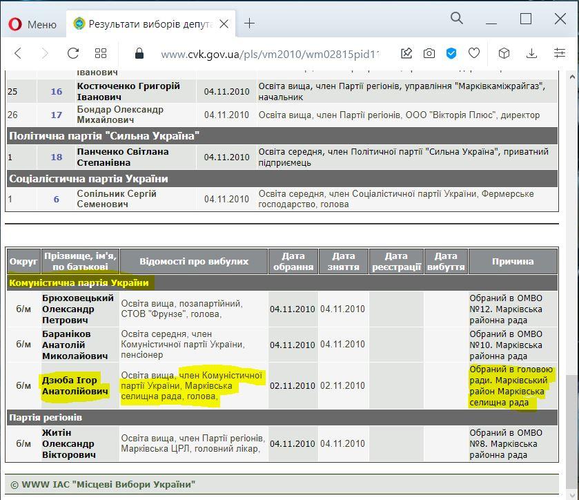 Марківка – невелике смт, тож люди часто голосують тут за просто звичні обличчя. У 2015 Ігор Дзюба знову став селищним головою. У 2018 його призначили головою райдержадміністрації, це виявився добрий стартовий майданчик для виборів на голову ОТГ, до складу якої увійшов увесь Марківський район у повному складі. Врешті він переміг на виборах у 2019 та 2020 фактично без допомоги партій і навіть всупереч впливовому в регіоні «Нашому Краю».