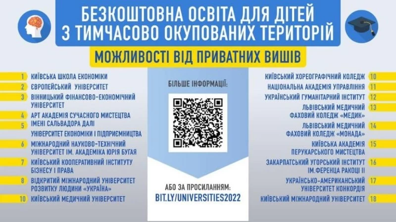Так, деякі з них також безкоштовно надають проживання. Вступ та навчання будуть проходити дистанційно. Абітурієнтам з ТОТ потрібно написати лише мотиваційний лист.