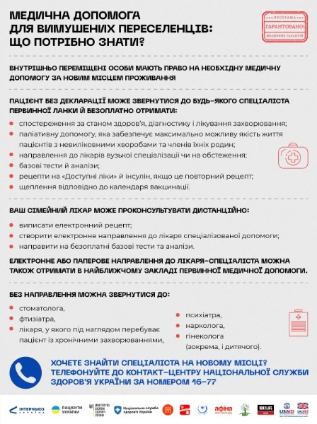 Переселенці мають право на спрощений доступ до первинної медичної допомоги. Звернення до лікаря первинної медичної ланки гарантує пацієнту: