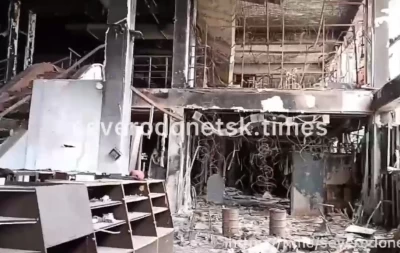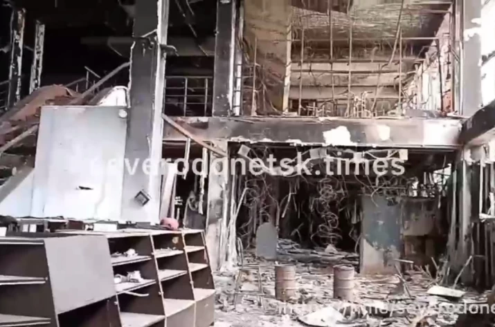 ТЦ майже повністю вигорів в результаті потрапляння в будівлю російських снарядів. Всередині всі магазини вигоріли через неодноразові обстріли окупантів.