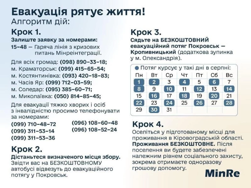 Міністерство з питань реінтеграції тимчасово окупованих територій України опублікувало інфографіку щодо евакуації з Донецької області.
