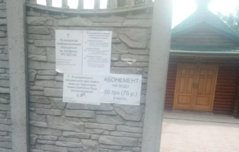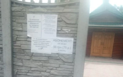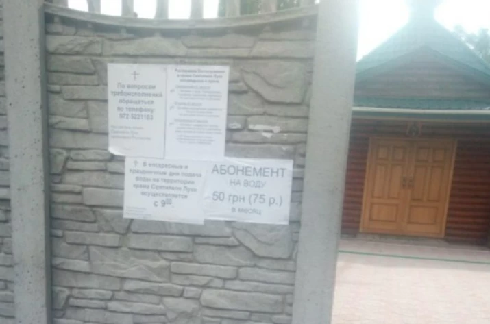 В Рубіжному, щоб набрати води, потрібно купити абонемент. На території храму абонемент на місяць він коштує 50 гривень або 75 рублів.