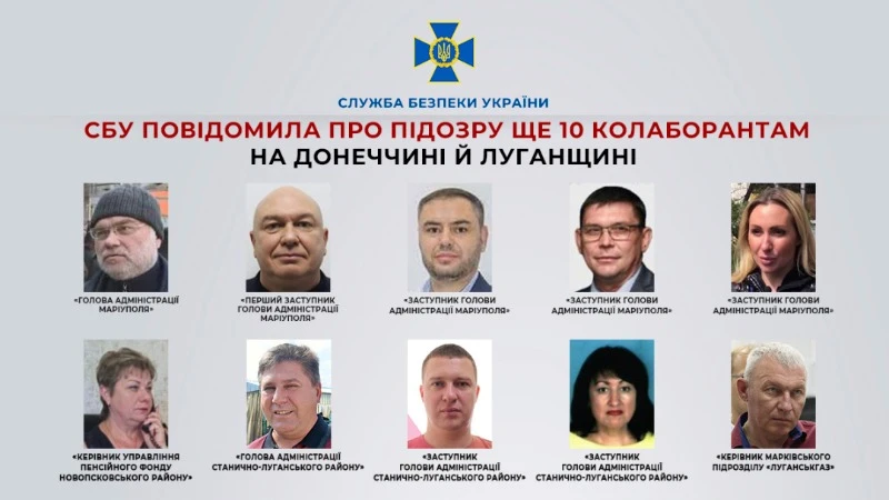 Співробітники Служби безпеки зібрали докази добровільної співпраці з ворогом ще десятьох "посадовців" на тимчасово окупованих територіях Донецької та Луганської областей.