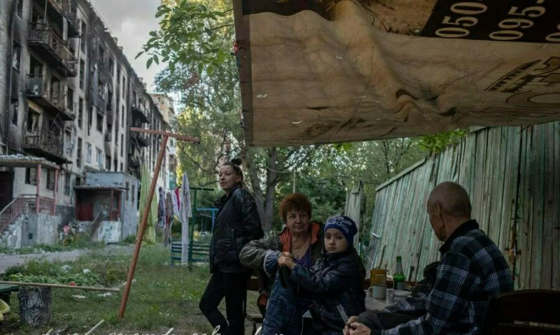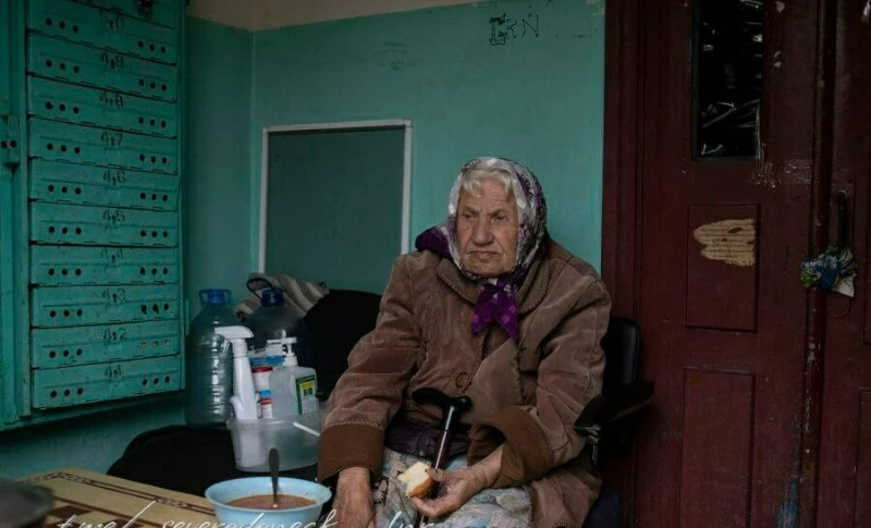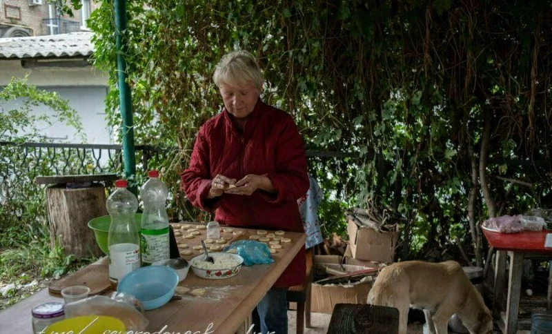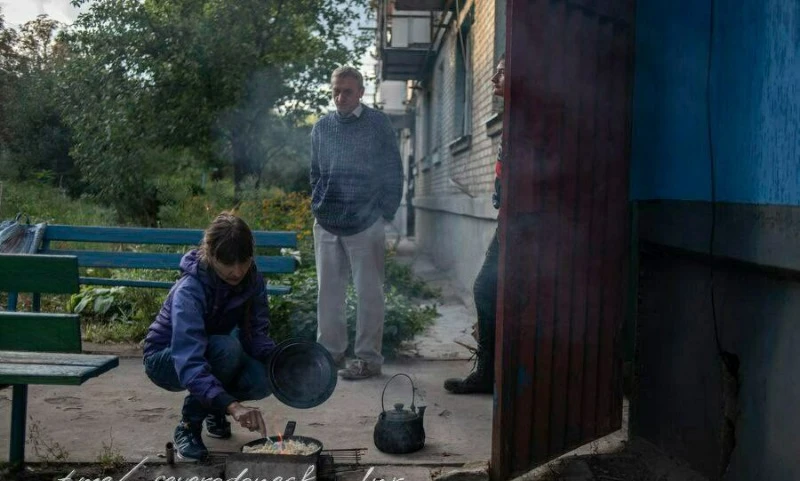 Місто Лисичанськ було останнім великим містом на Луганщині, що окупували російські військові. На фото люди збирають та рубають дрова, ймовірно, щоб приготувати на кострі їжу та не замерзнути, бо різке похолодання вже відчутне. На фотографіях люди вже у верхньому одязі.