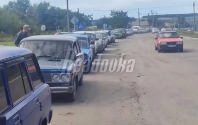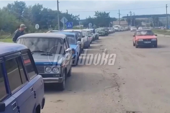 На кадрах видно, як десятки автівок рухаються на виїзд з міста.