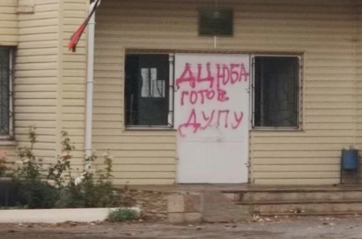 У прикордонному селищі міського типу Марківці на Луганщині місцеві партизани написали пікантне послання для голови Марківської окупаційної адміністрації.
