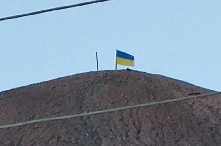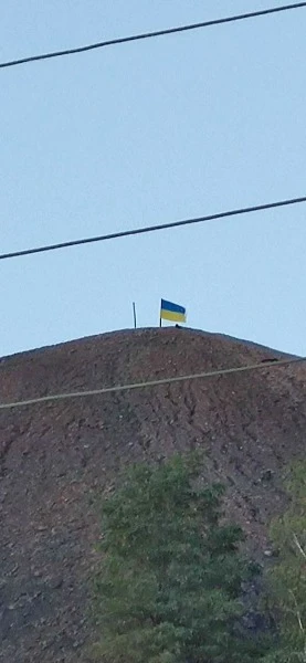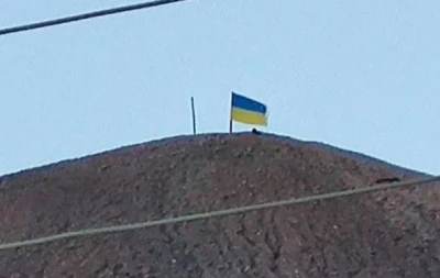 Так, український прапор повісили на високому териконі в смт. Ясенівський. Українські партизани працюють в глибокому тилу Луганської області.