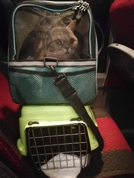 Пластикових міцних переносок було лише дві, і легка сумка з сіткою, куди поміщалась лише найменша кішка Грейс. З собою взяли по маленькому наплічнику на спини з особистими речами та документами, маленьку сумку з їжею для себе та кормом для котів.