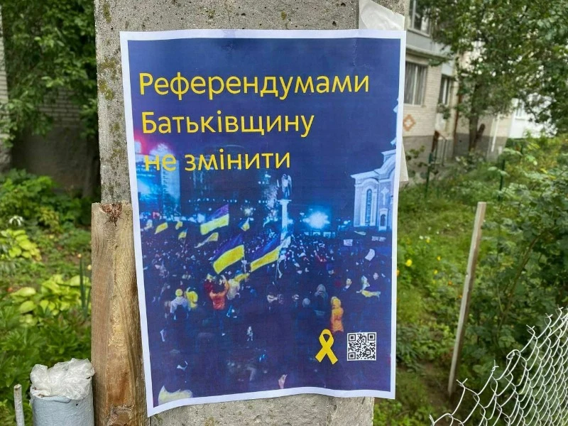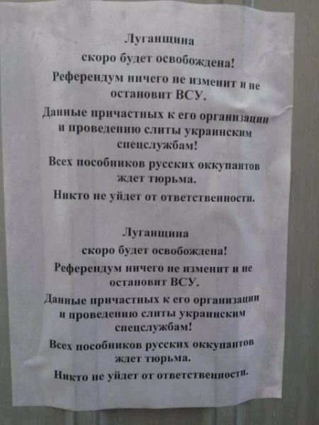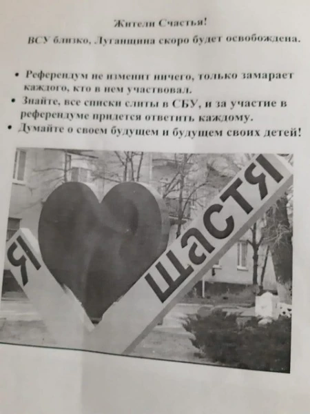В окупованому Щасті напередодні псевдореферендуму партизани розклеїли листівки з посланням до зрадників.