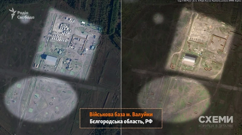 1 жовтня Planet Labs зафіксував, що військова техніка, включно із гелікоптерами, а також намети, в яких розміщується особовий склад, зникли з території військової бази у Валуйках Бєлгородської області, яка межує з Харківською, Сумською та Луганською областями України.