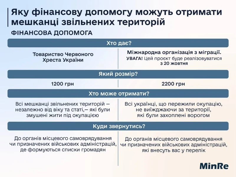 А вже з 20 жовтня мешканці звільнених регіонів зможуть отримати додаткову грошову допомогу.