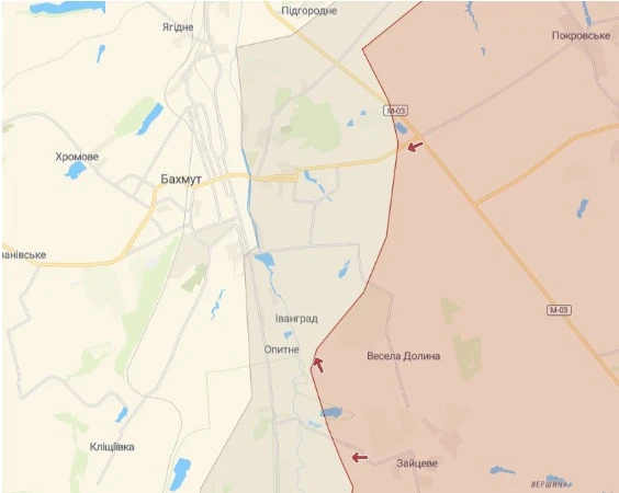 “Повідомляють, що вночі підрозділи ЗСУ почали залишати Артемівськ (Бахмут). Британська розвідка підтверджує, що Опитне та Іванград загублені для України. Союзники підійшли до Артемівська, загони “Вагнера” навіть заходили на околиці міста кілька днів тому”.