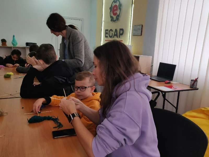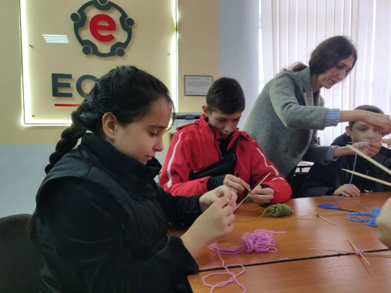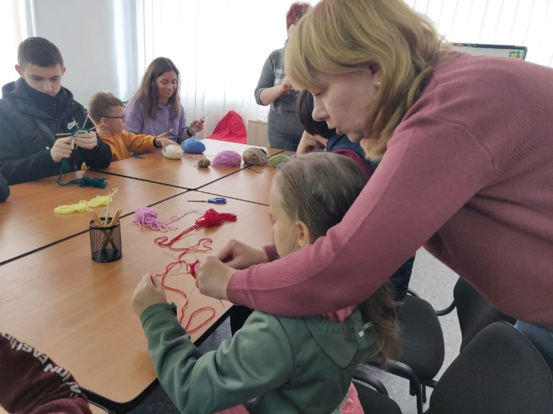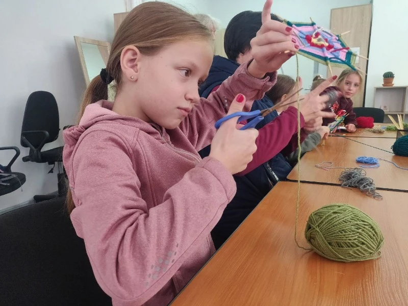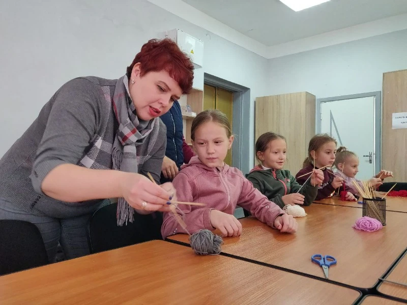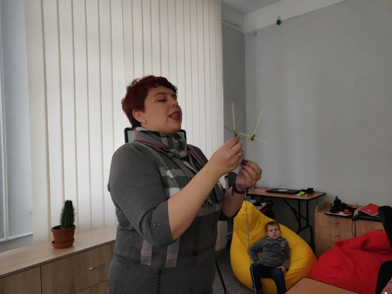 Майстриня народних ремесел Ольга Клюшанова провела урок з плетіння для дітей, що є тимчасово переміщеними особами з Луганської та Донецької областей. Участь прийняли діти різного віку, найменшим - допомагали батьки.