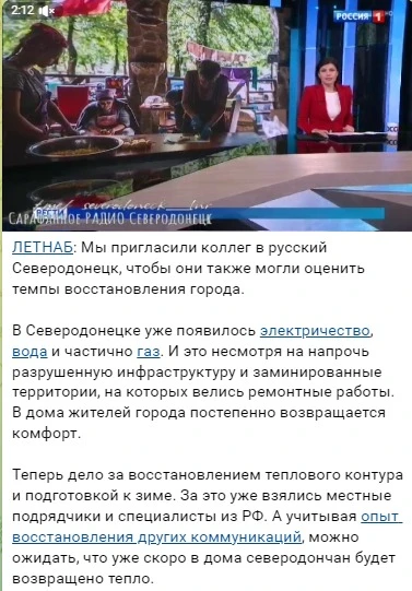 "Now it's time to restore the heat circuit and prepare for winter. Local contractors and specialists from the Russian Federation have already started taking necessary actions. And taking into account the experience of restoring other public utilites, we can expect that heat supply will be restored in Sievierodonetsk soon". − the occupiers said the next day, supporting the post with a story from a Russian propaganda channel.