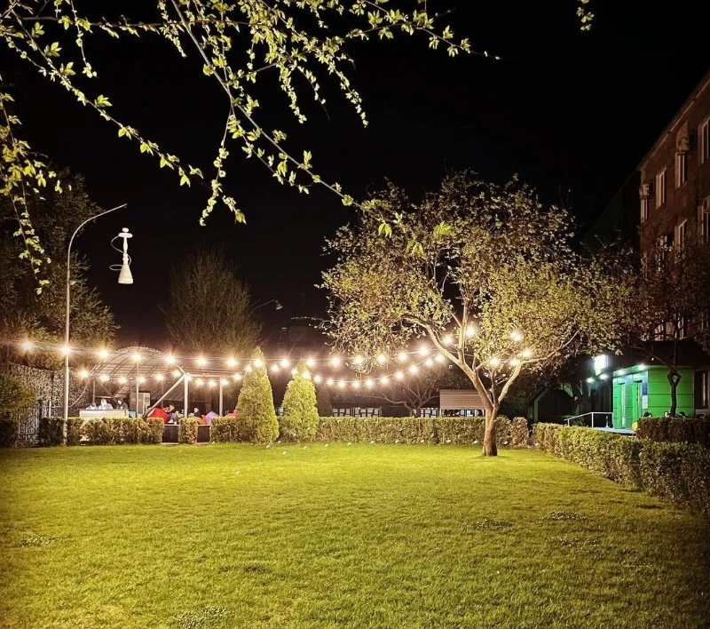 Міні-сцена, майданчик для дітей, фото-інсталяції, простір для відпочинку та екран для вечірніх показів фільмів.