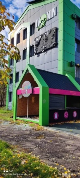 А вже згодом її викупив Михайло Івонін та вирішив зробити бізнесцентр та сквер біля нього.До 24 лютого тут знаходились управління соцзахисту — це найбільший орендар. Також тут була газовидобувна компанія з Кремінної та салони краси. А біля будівлі розташовувались кавові вагончики.