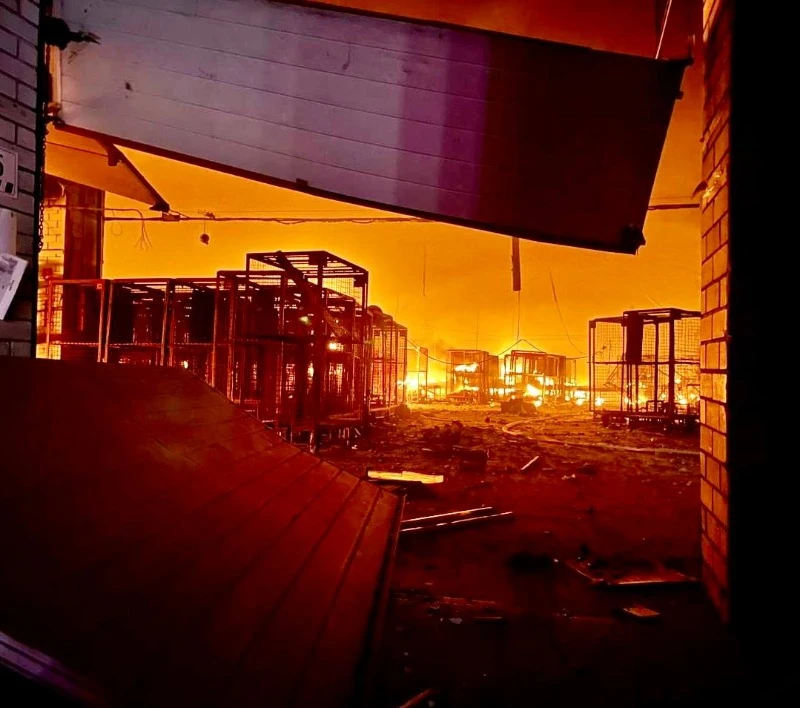 "Ворожий удар спричинив сильну пожежу. Горіло на понад 3 000 квадратних метрів. Вогнеборці полум’я уже приборкали. Зруйновані склади підприємства", - написав він.