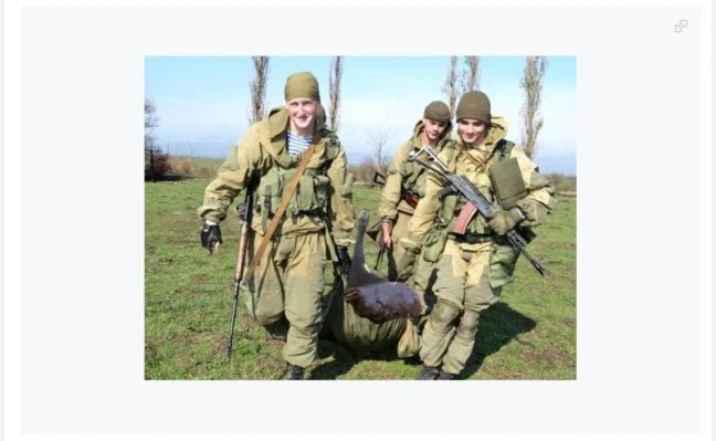 Так, в Росії фото опублікували із заголовком: «Київські силовики крадуть худобу у мирних жителів». На фото українські військовослужбовці несуть начебто худобу.