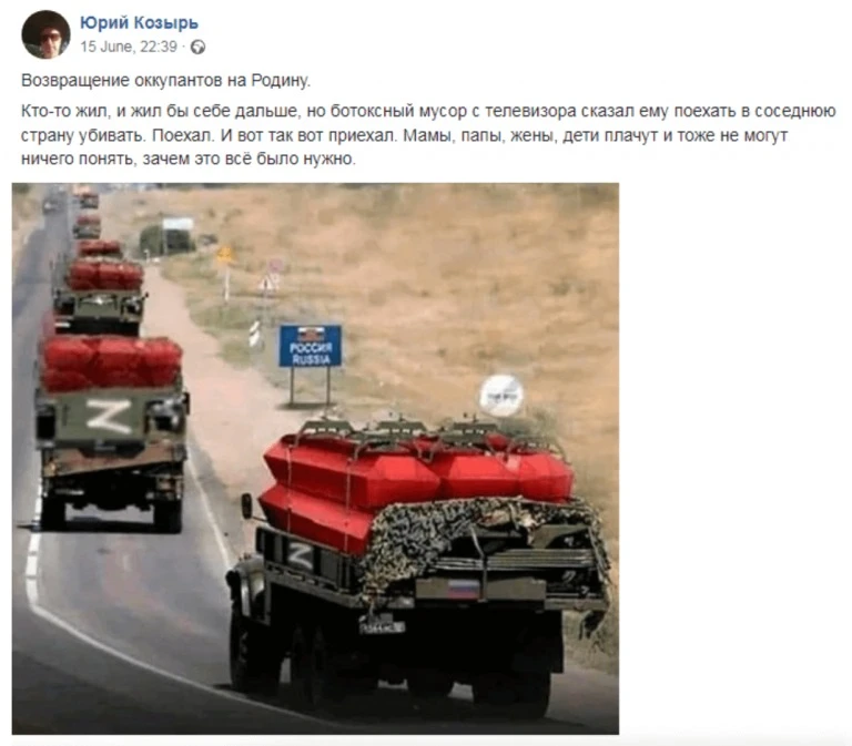 Також у соцмережах поширювали фото нібито трун із тілами російських солдат на вантажівках з літерою «Z», які повертаються в Росію.
