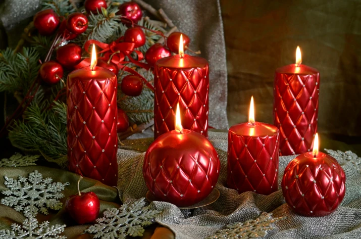 Существуют свечи непосредственно для освещения и декоративные, а также ароматические. Перед Новым годом больше всего пользуются популярностью праздничные декоративные свечи. Они могут быть украшены, например, дождиком, иметь небольшой забавный рисунок снеговика, снега, елочки. Такой декор понравится всей семье.