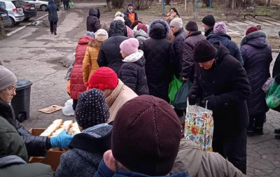 У захопленому російськими військовими Маріуполі новорічні та різдвяні свята мешканці зустрічають у чергах за гарячою їжею та хлібом.