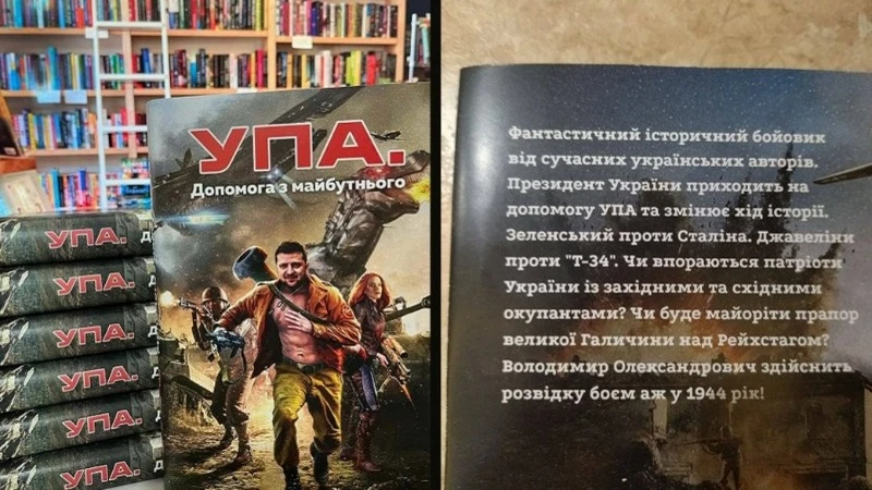 The video reported that in Ukrainian schools, children were forced to read specific fiction on the holidays. In the book entitled "UPA. Help from the Future" Volodymyr Zelenskyy travels through time, fights alongside the Ukrainian Insurgent Army (UPA), and also confronts the head of the USSR, Joseph Stalin.