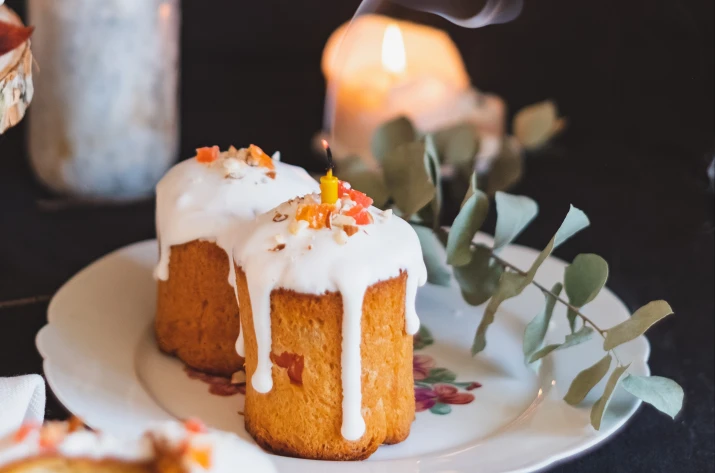 - Глазурь — базовое покрытие, которое наносят на верхушки сдобного хлеба. Она бывает белковой, желейной, ванильной, шоколадной. Классический белковый айсинг готовят из яичных белков и сахара, добавляя пищевые красители для придания оттенка или яркости. Глазурь для кулича можно сделать самостоятельно в домашних условиях, но лучше воспользоваться готовой смесью для гарантированного результата.