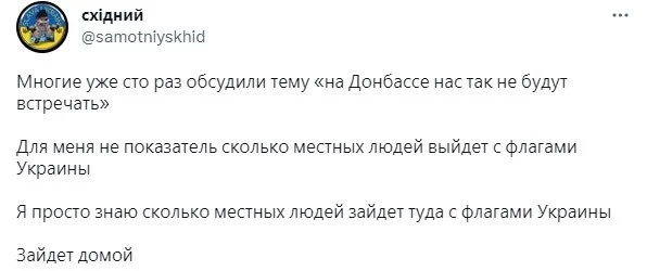 В последнее время мне пишут молодые ребята из Стаханова, Алчевска, Луганска с интересным вопросом: "мы хотим выехать на подконтрольную Украине территорию и поступить в ВСУ. Как нам это сделать без паспорта Украины?" Бывают случаи, когда люди переживают, что после деоккупации всех будут равнять под одну гребенку и судить за те же паспорта России. Но таким, как я, хорошо известно, что многие люди просто вынуждены были получать эти красные бумажки, чтобы банально жить и работать в своем городе. В общем, те кто пишут мне, - ждут прихода ВСУ. Ну, кроме сотни земляков, которые ежедневно желают смерти, угрожая взять меня в плен, повесить на центральной площади, сварить в котле и т.д.