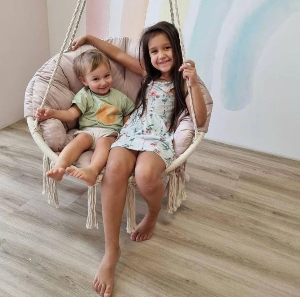Говорит, что сама шить не может, поэтому сначала отдавала заготовки качели знакомым мастерицам или в ателье. Обычно они подсказывали ей, какие лучше выбрать ткани, чтобы они были максимально плотными и выдерживали вес ребенка. Размерная сетка производства качелей Евгении – с самого рождения и до 120 кг. С развитием бизнеса у женщины появилась собственная команда, с которой они радуют не только детей из Украины, но и из стран Африки, Австралии, Европы и Азии.